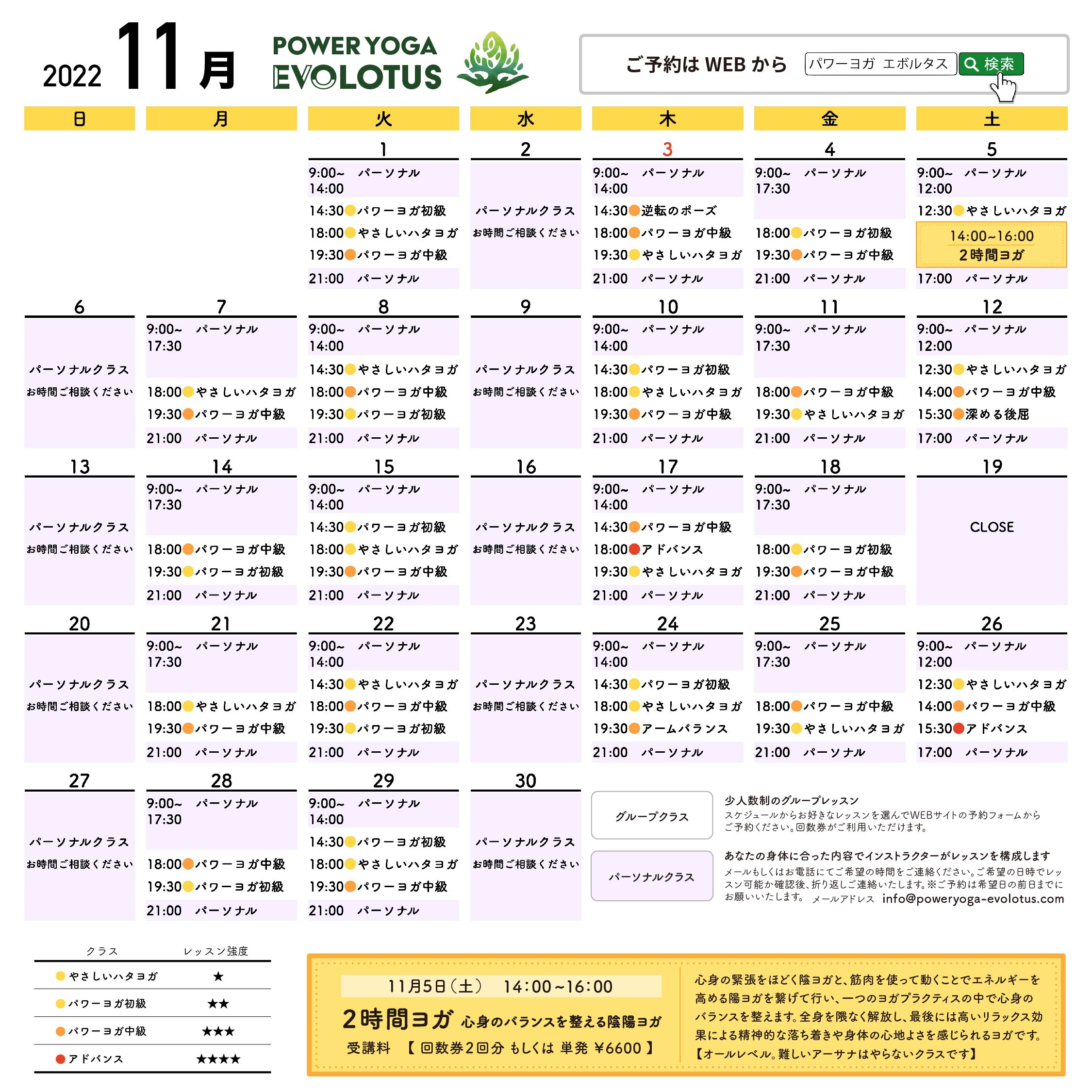 11月のスケジュールを掲載しました
