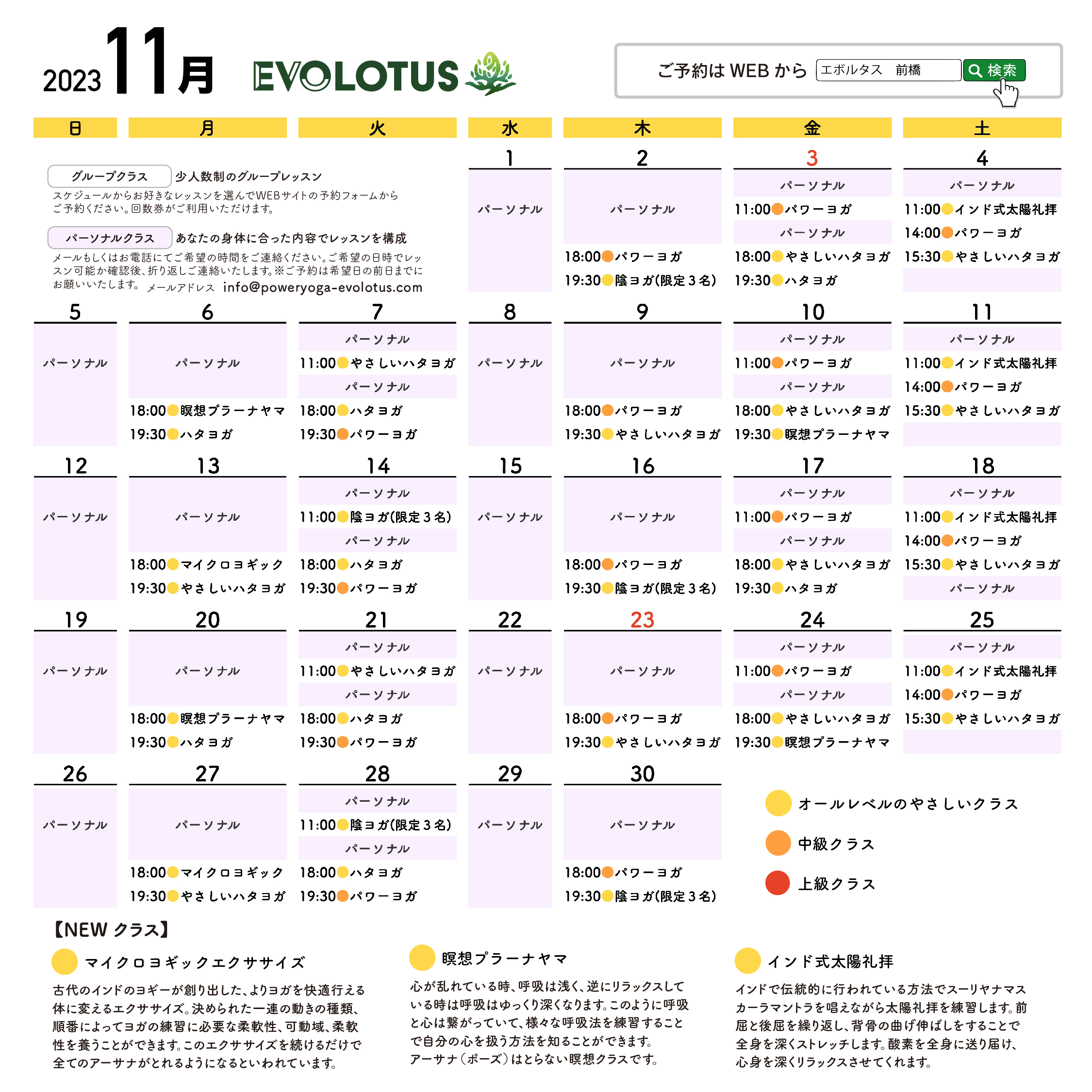 11月スケジュールを掲載しました