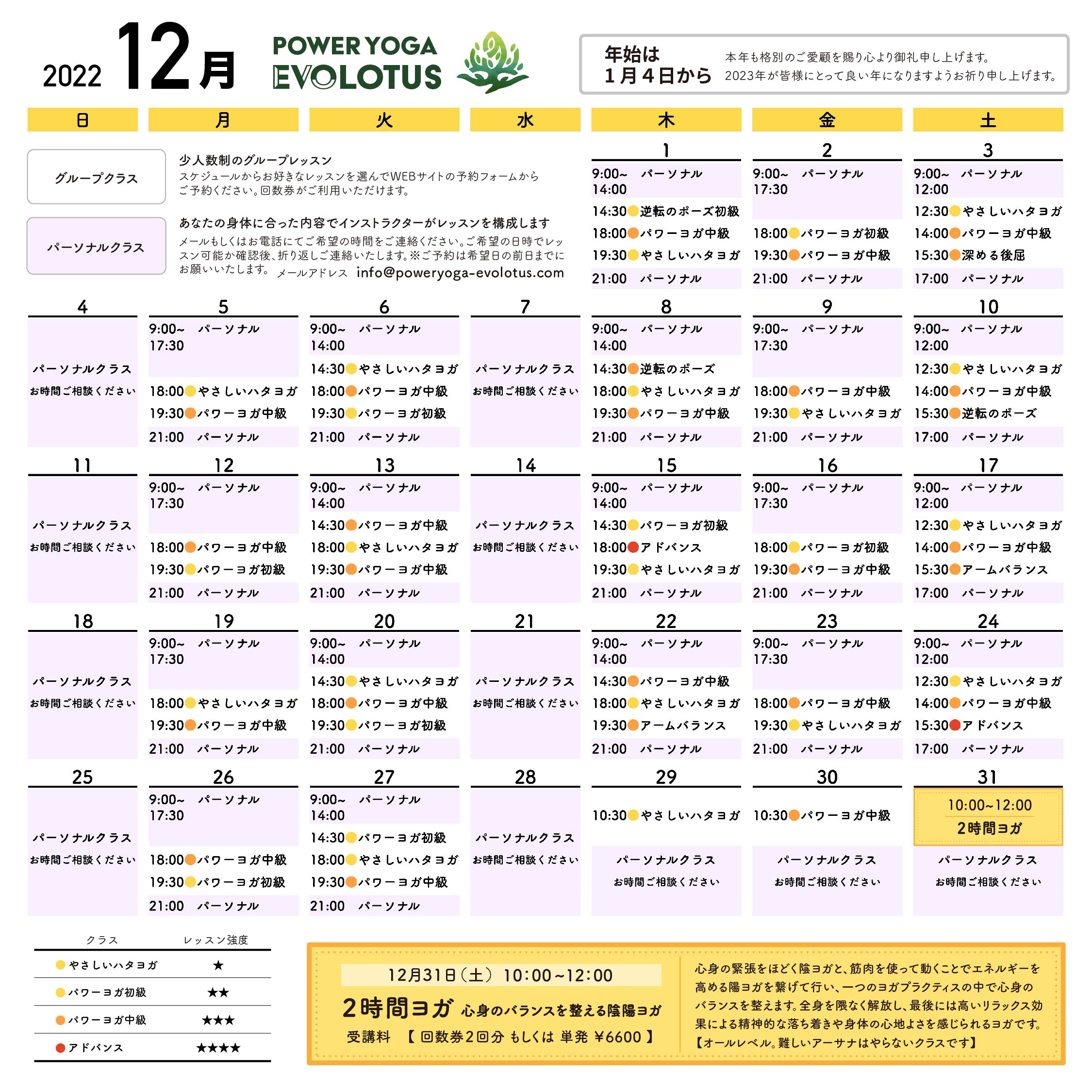 12月のスケジュールを掲載しました