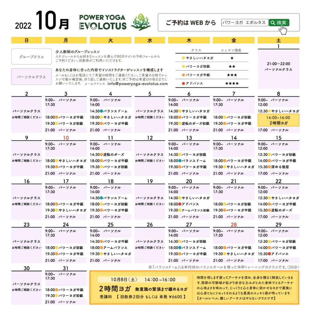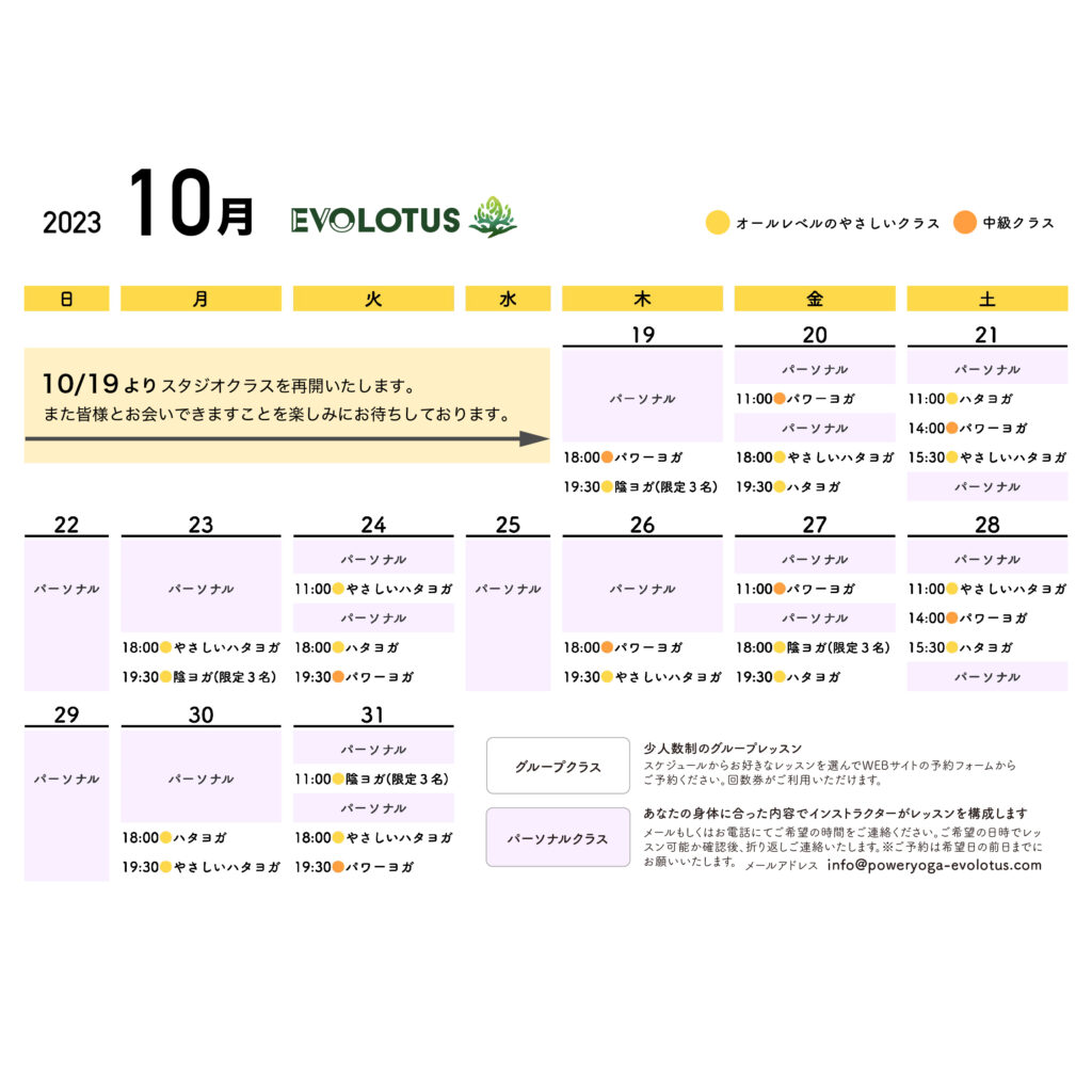 10月のスケジュールを掲載しました
