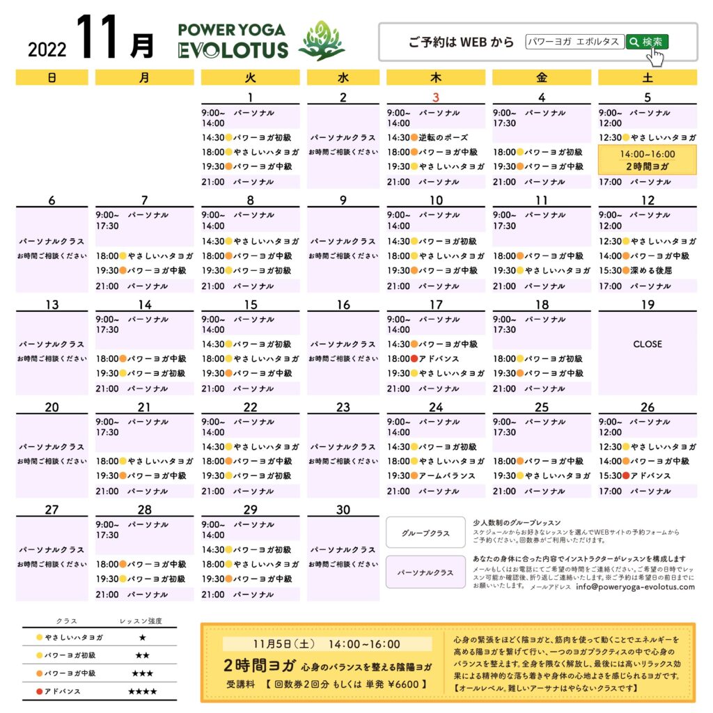 11月スケジュールを掲載しました