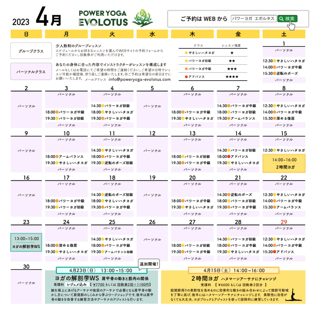 4月のスケジュールを掲載しました